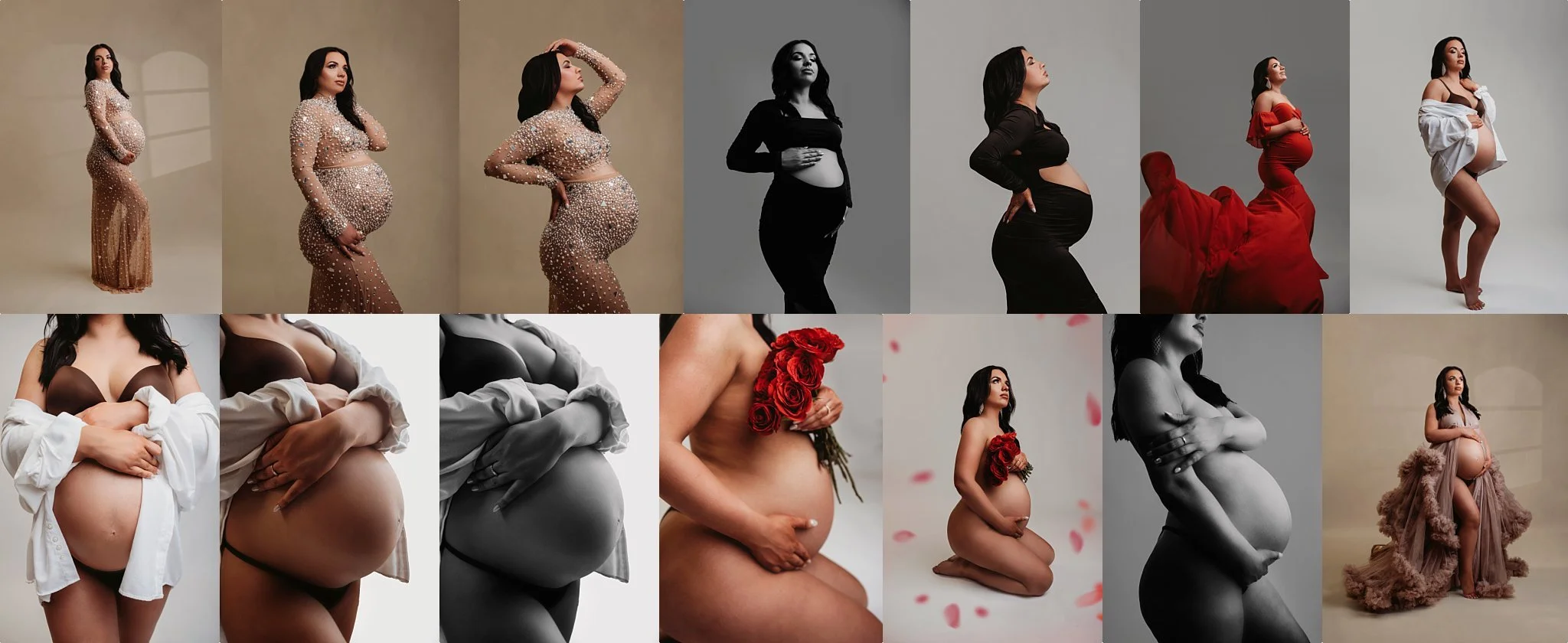 You’re growing a human. You’re managing appointments. You’re balancing work, family, and exhaustion. The last thing you need is the stress of finding the perfect dress, scheduling a makeup artist, or wondering if you’ll feel confident in front of the camera.
